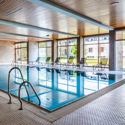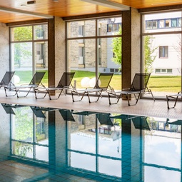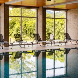 Der Wellnessbereich bietet Ihnen ein beheiztes Hallenbad, ein Dampfbad, eine Bio-Sauna und eine finnische Sauna sowie gemütliche Sitzecken.
