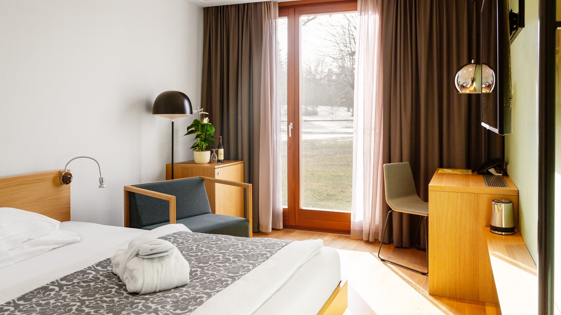 Unsere Classic Zimmer (Einzel- und Doppelzimmer bis zu 23 m2) und Deluxe Zimmer (Einzel- und Doppelzimmer bis zu 24 m2) verbinden den Reiz der umgebenden Natur mit zeitgemäßen Einrichtungselementen. Die Deluxe Zimmer bieten zudem noch eine eigene Kaffee- und Teestation. Die Einzelzimmer sind mit Queensize-Betten ausgestattet.
